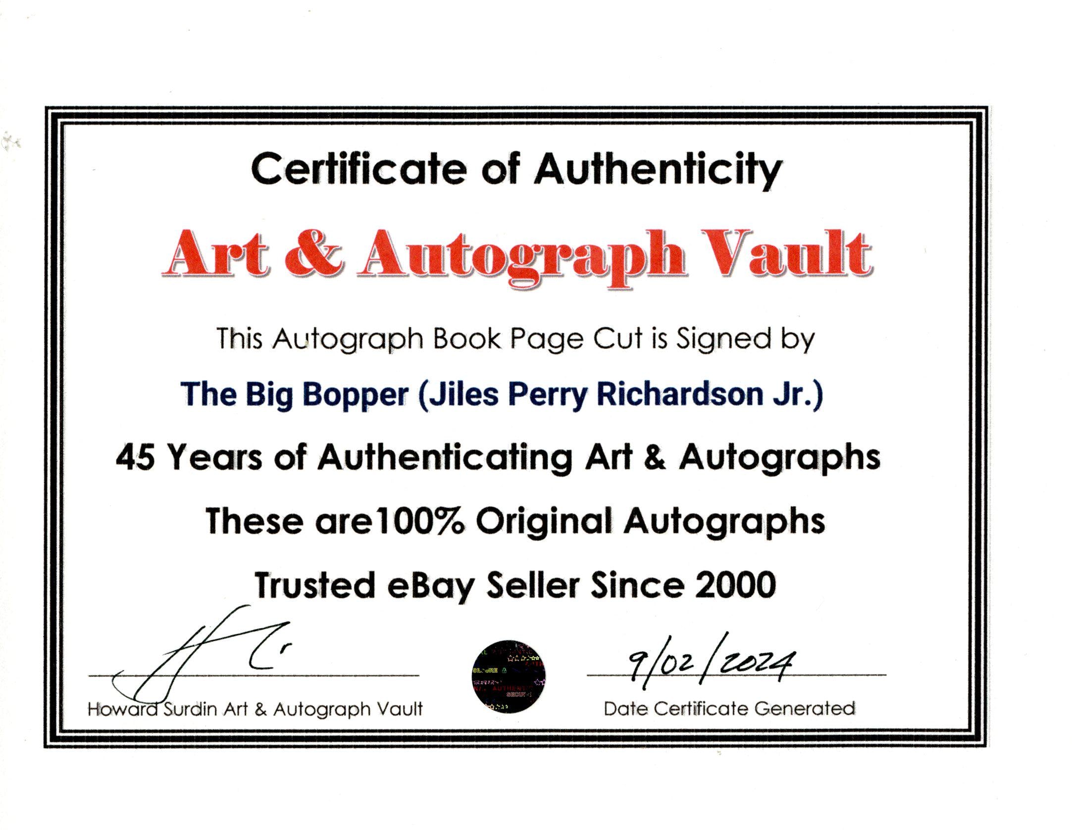 Double matted autograph book page cut is signed with the original signature of: JP Richardson-The Big Bopper