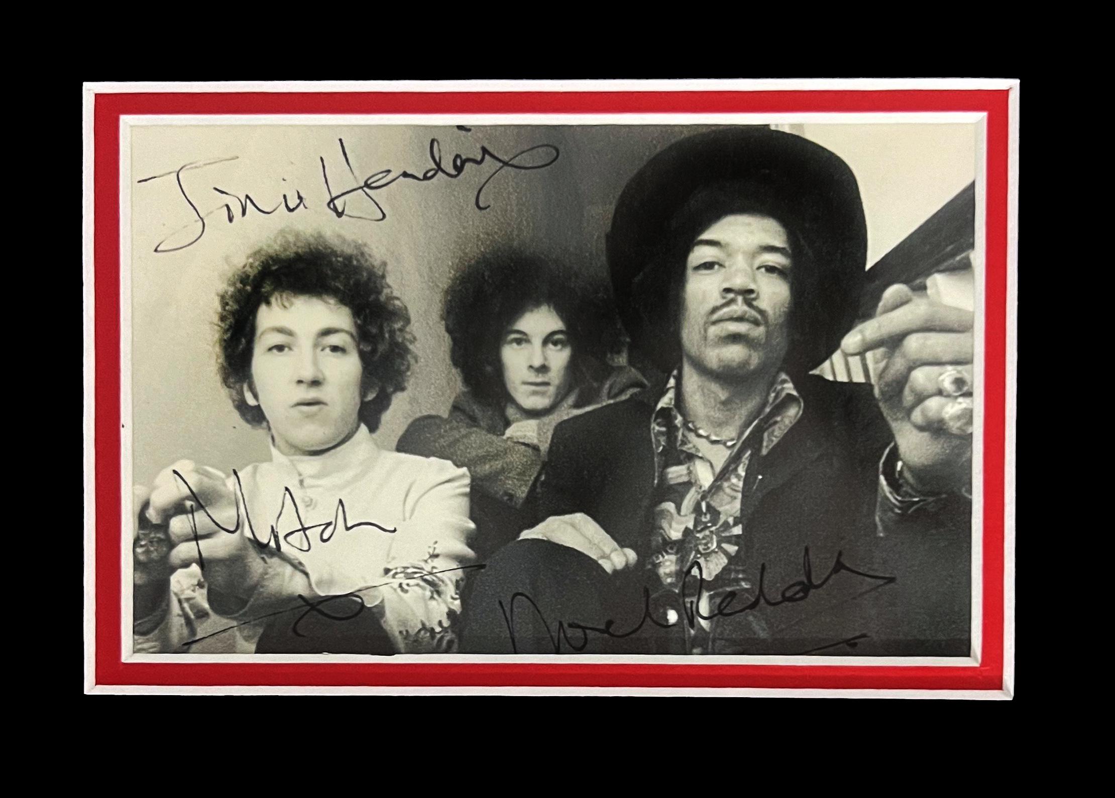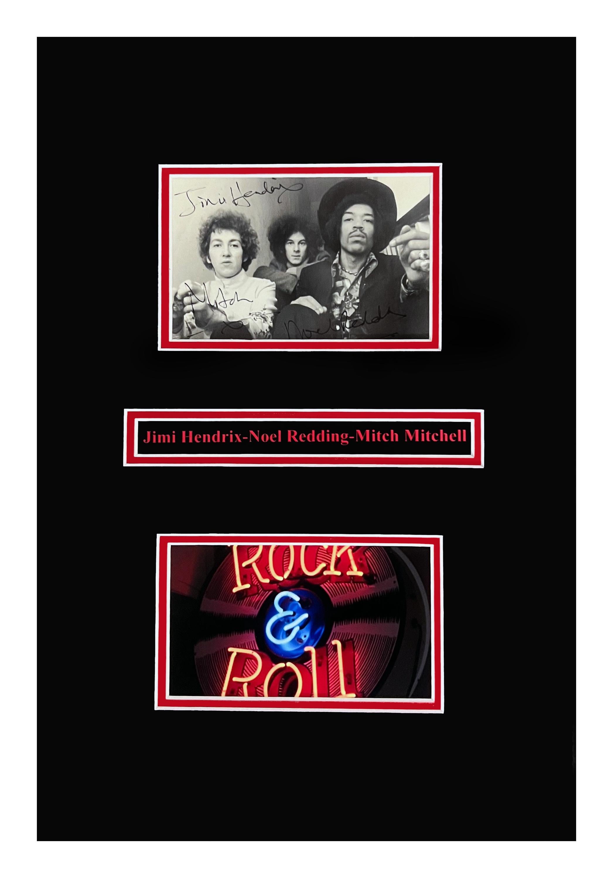 Double matted autographed photo image is signed with the original signature of following: Jimi Hendrix-Noel Redding-Mitch Mitchell