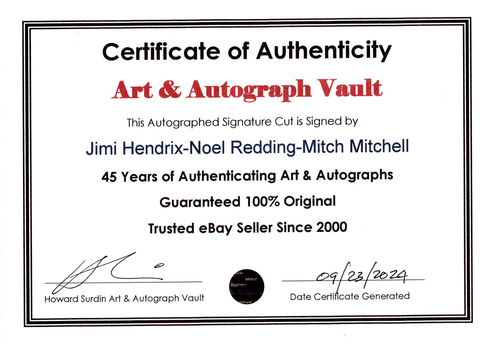 I have been collecting autographs for over 45 years. I owned an Art & Collectibles Gallery in Rancho Mirage California for over 25 years. Before that I was an avid autograph collector. Over those years that I have been a collector I was also an appraiser and did appraisals for my customers and even for insurance companies. I have authenticated many signatures and pieces of artwork from Monet to Picasso, Red Skelton and many more including Elvis. I framed art for the likes of Red Skelton, President Gerald Ford (Ford for over 15 years) and President Bill Clinton as well as Lucille Ball, Loretta Young, Ginger Rogers, George Montgomery, Dinah Shore and Walter Annenberg, Bob Kane (Batman Artist), The Baseball Hall of Fame, Graeme Baxter “World Famous Golf Artist” and so many more. I also framed a Babe Ruth Display that was donated to the Baseball Hall of Fame. I had a customer that collected items that traveled to the moon. I also framed a set of pens and quills that go back as far as President Washington. I have met many of these people in person and received autographs as gift from many of them as well. I have autographs of Bob Dylan, The Beatles, Rolling Stones, Jimi Hendrix, Janis Joplin and about 900 others. I bought Elvis and Janis Joplin and Jimi Hendrix and others from an estate auction in Germany, United Kingdom, United States for many, many years from massive collections that were auctioned off. This is the results of 40+ years of collecting. Back then in the 60’s & 70’s 80’s there was not as much paperwork on provenance on collectibles. I paid a fair amount of money for these items and know that they are original autographs.