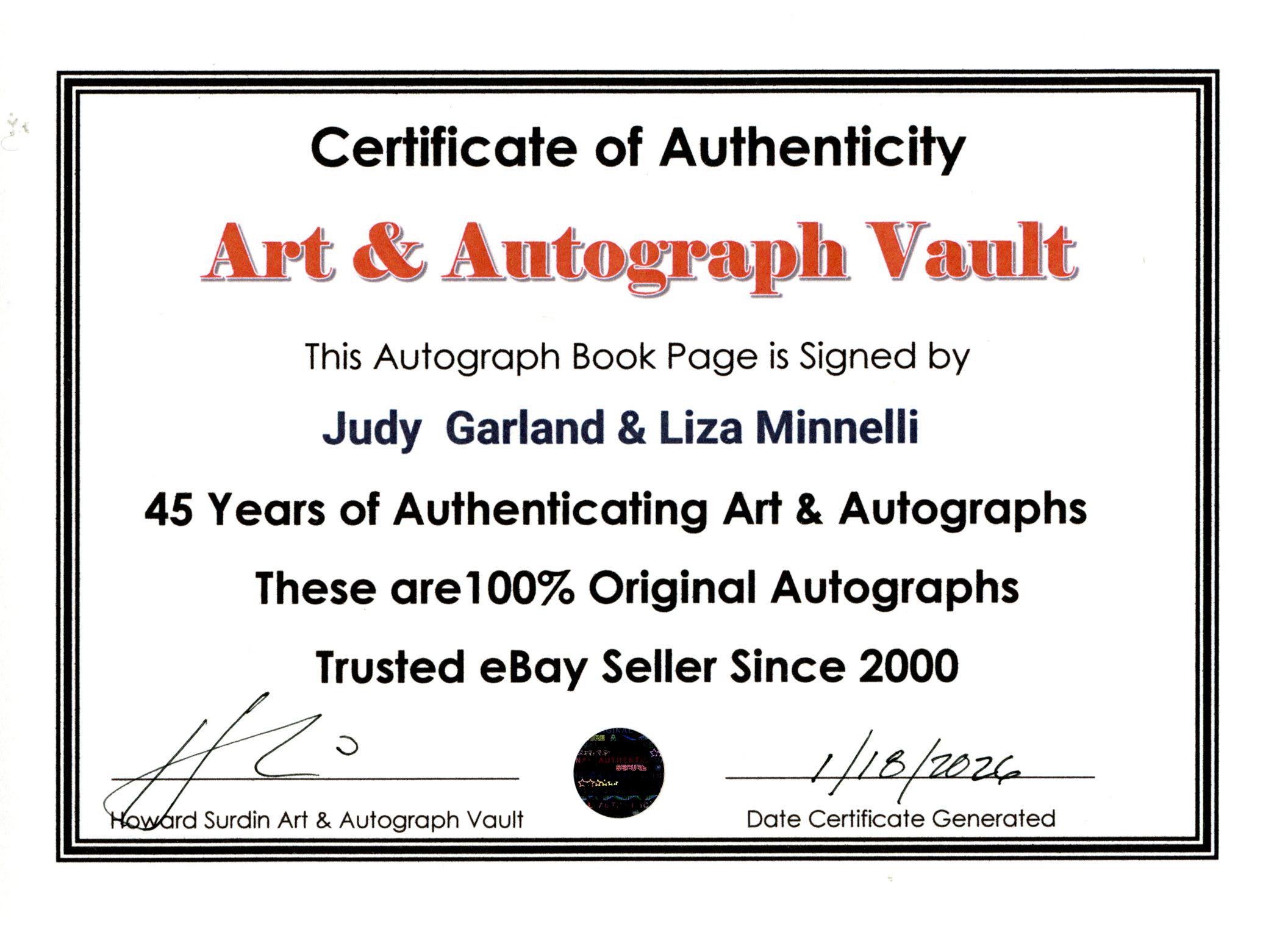 Judy Garland & Liza Minnelli Autograph Book Page Signed