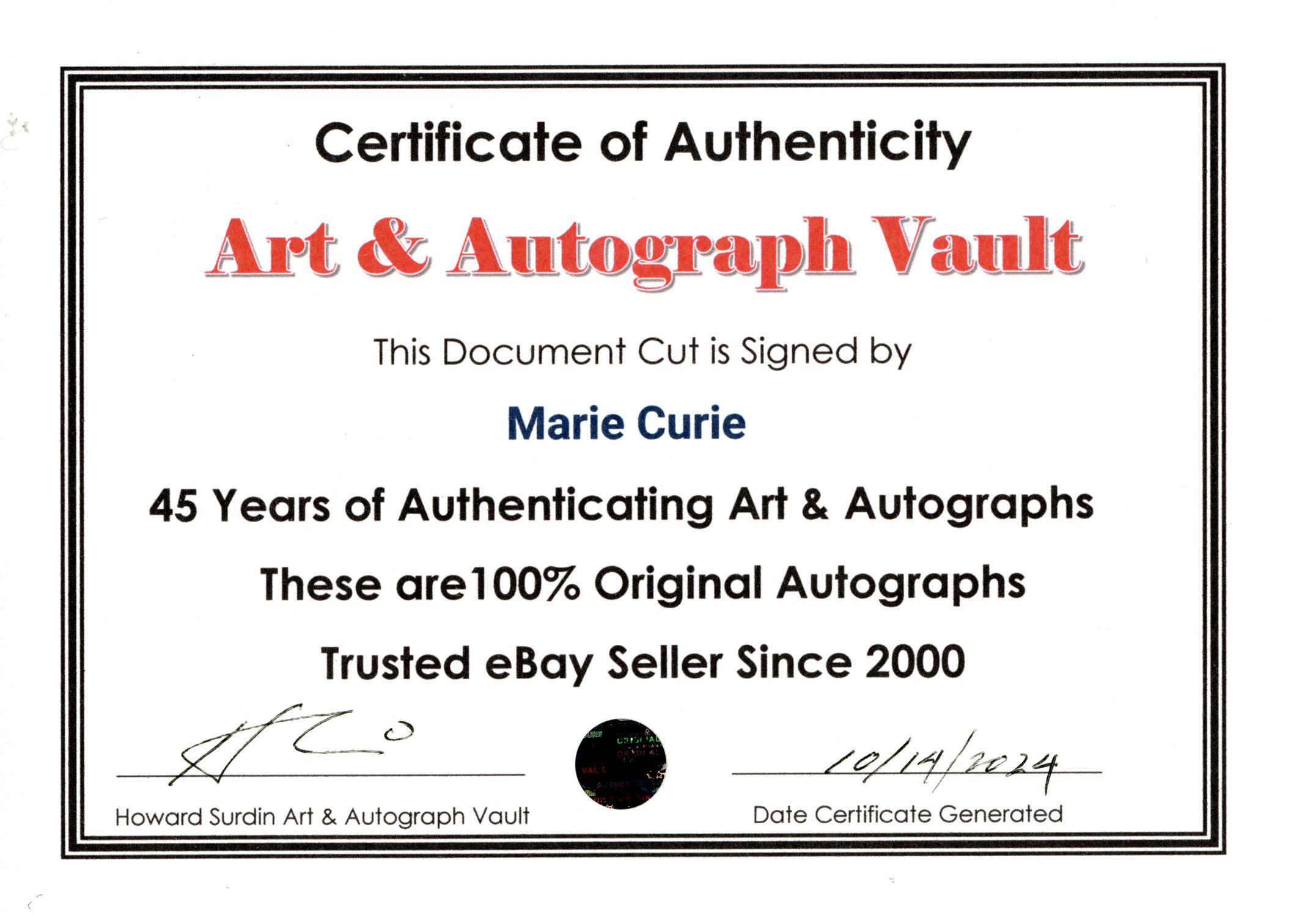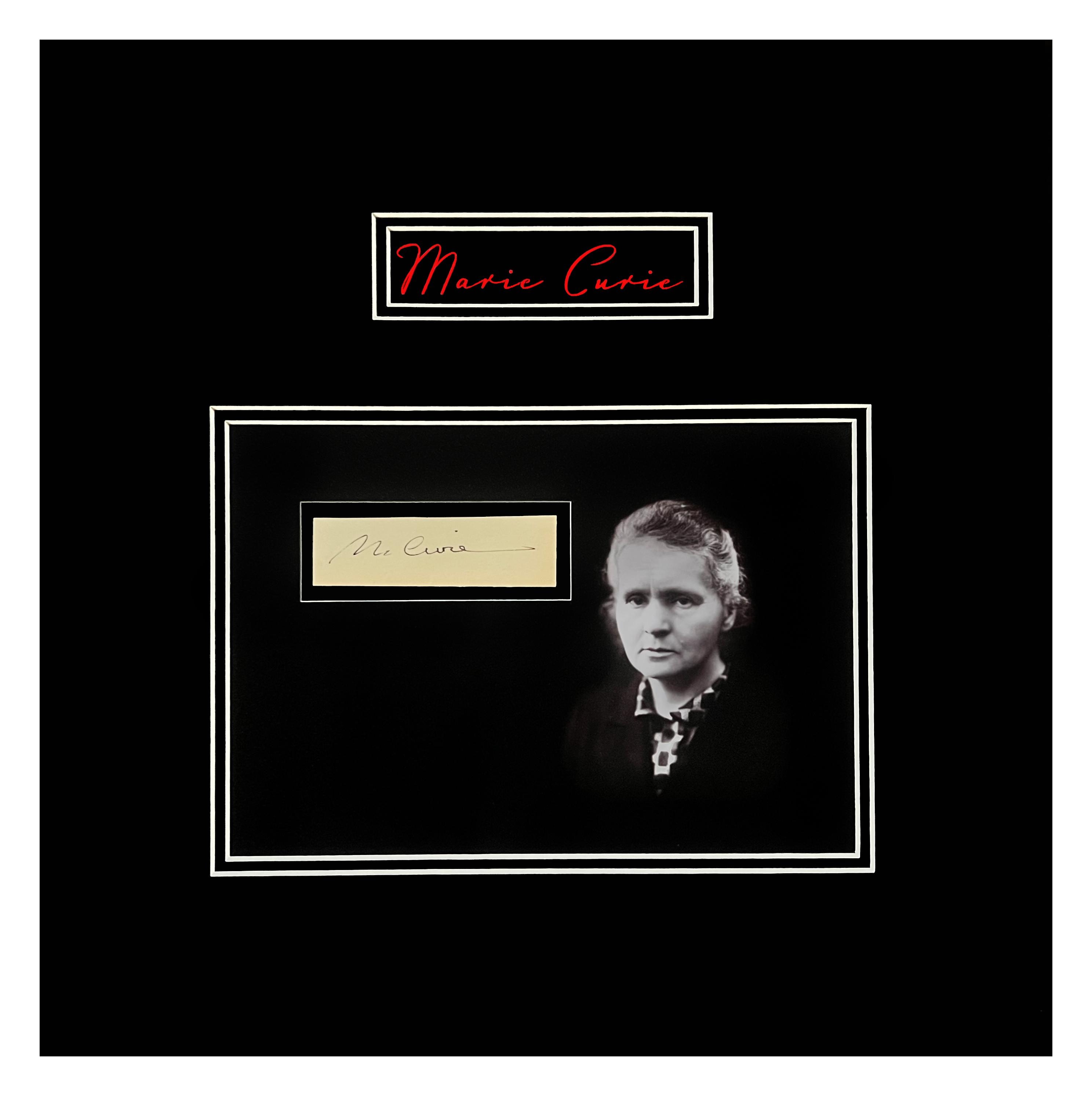 Double matted document cut with an original signature of: Marie Curie