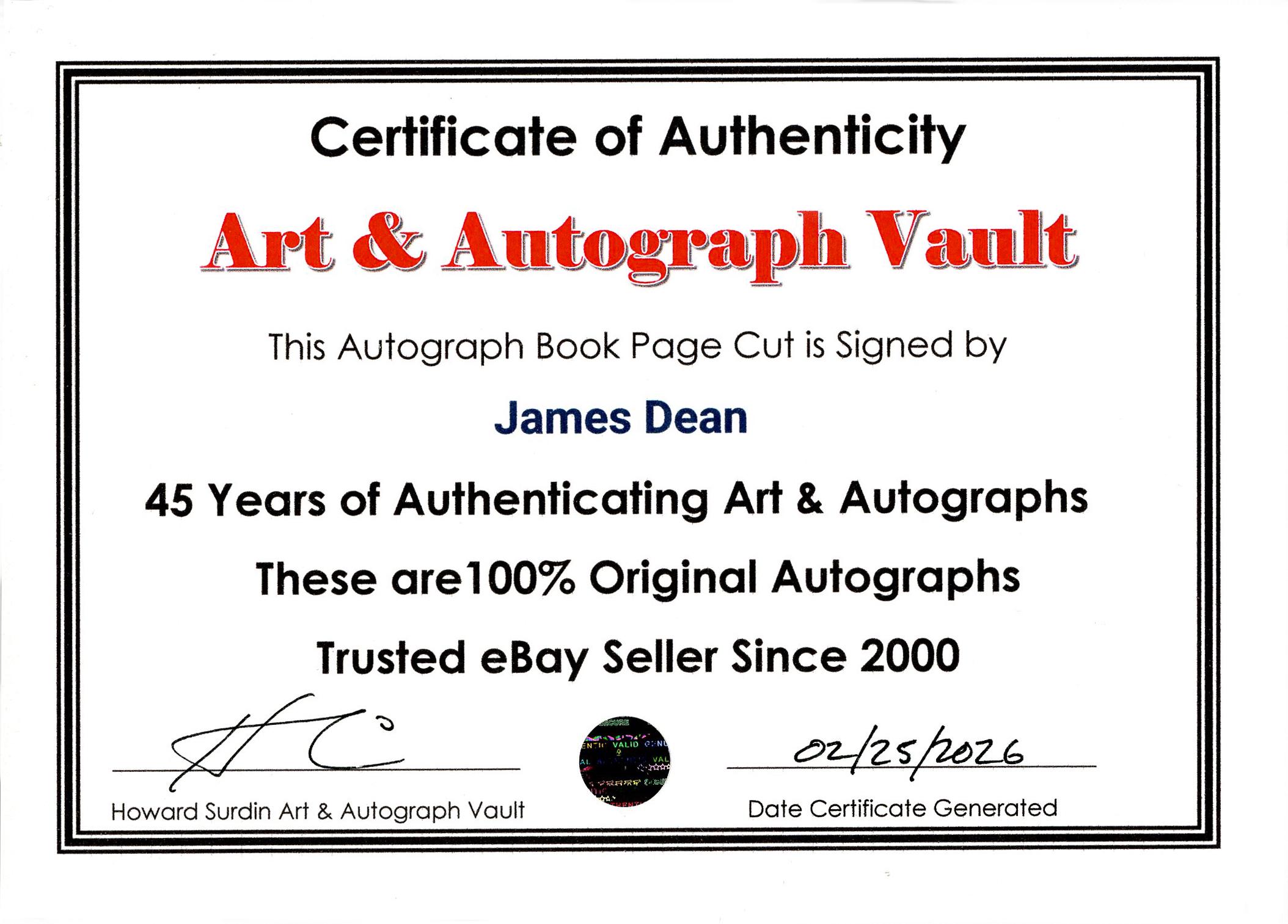 Double matted autograph book page Cut is signed with the original signature: James Dean