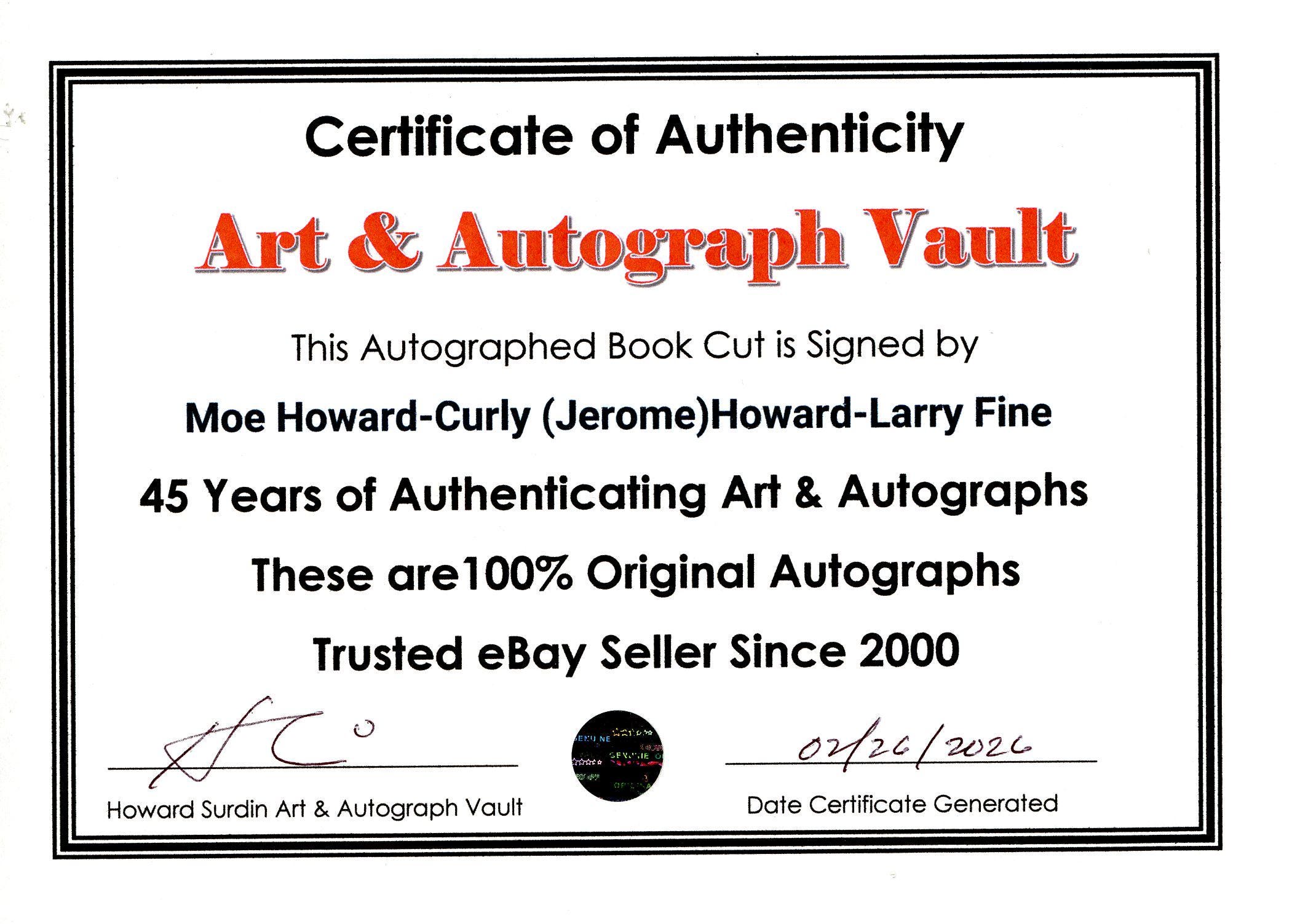 The Three Stooges Autograph Book Page Cut Pre-owned