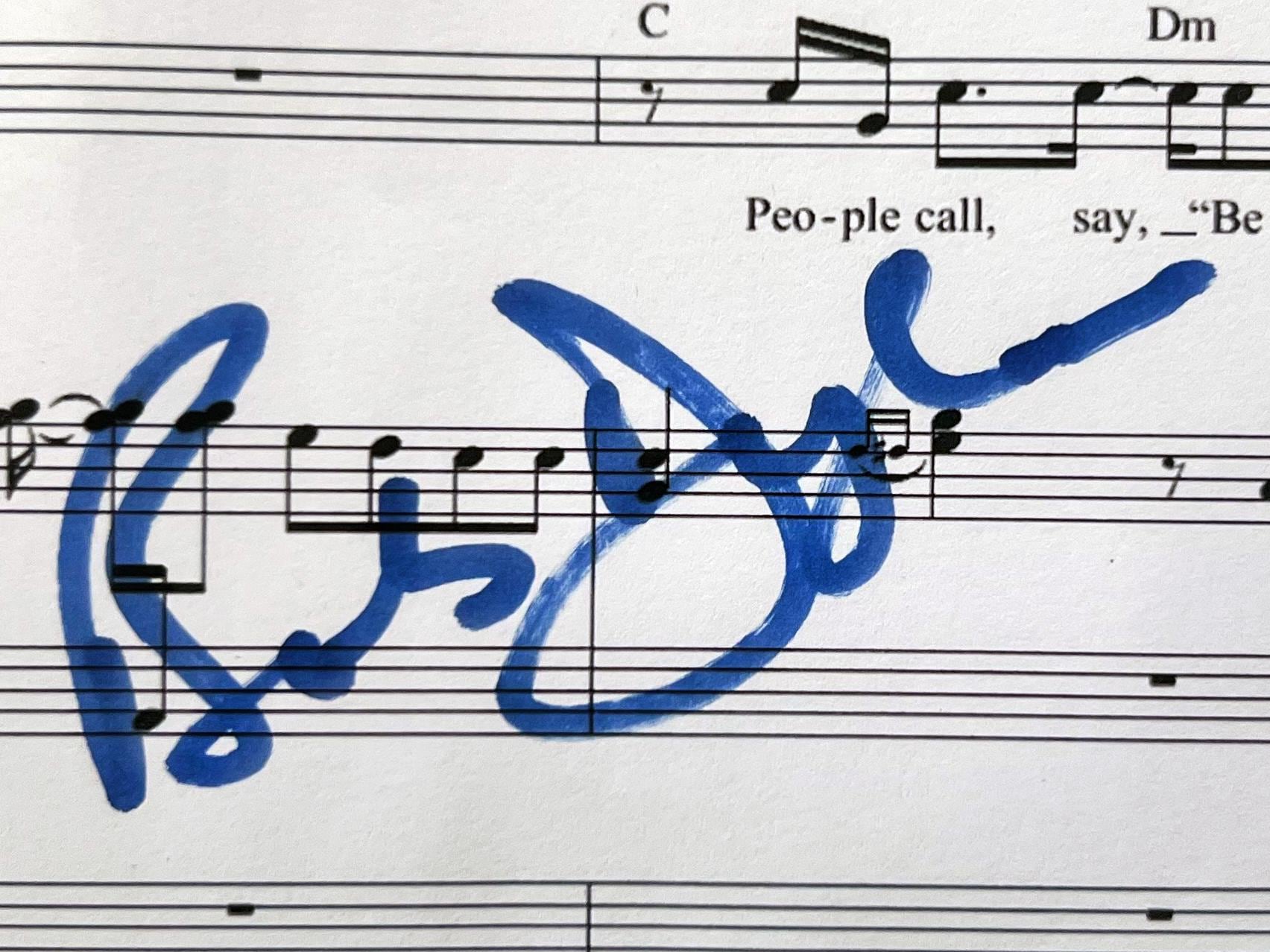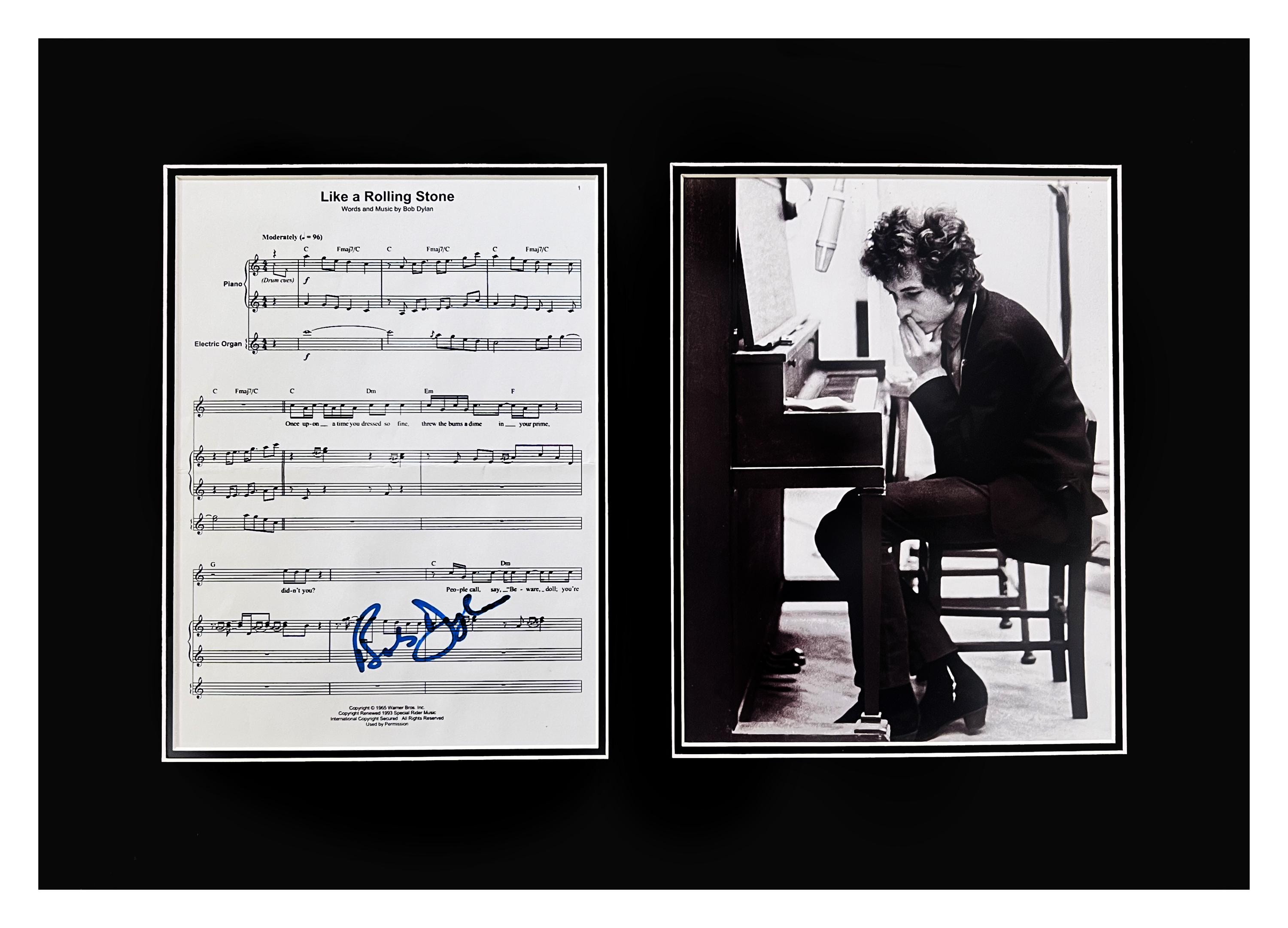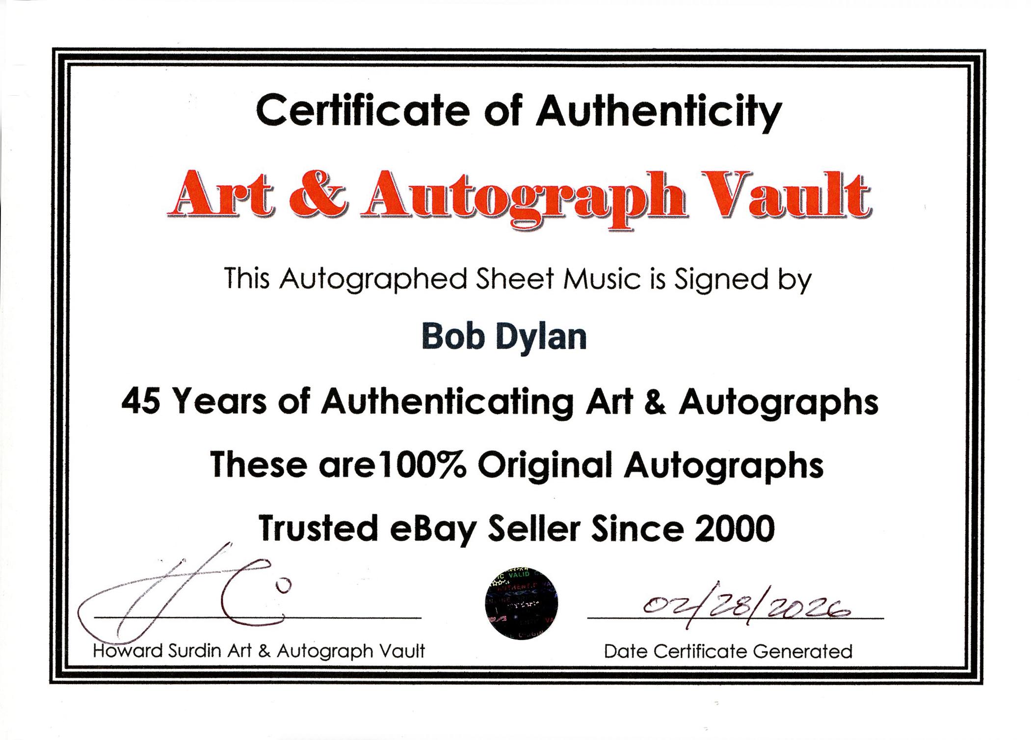 Double matted autographed Sheet music is signed with the original signature by: Bob Dylan