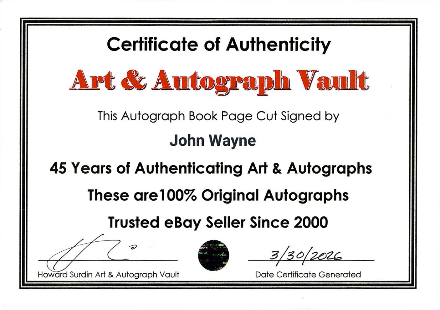 John Wayne Autograph